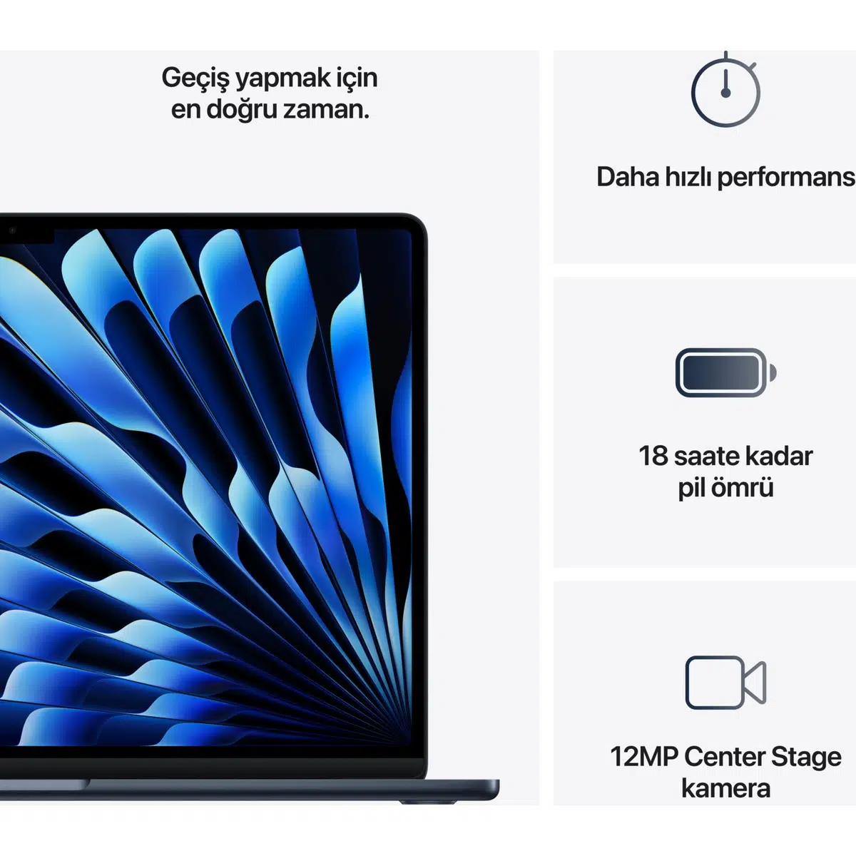 MacBook Air M4 16GB 512GB SSD macOS 15" Taşınabilir Bilgisayar Gece Yarısı MW1M3TU/A