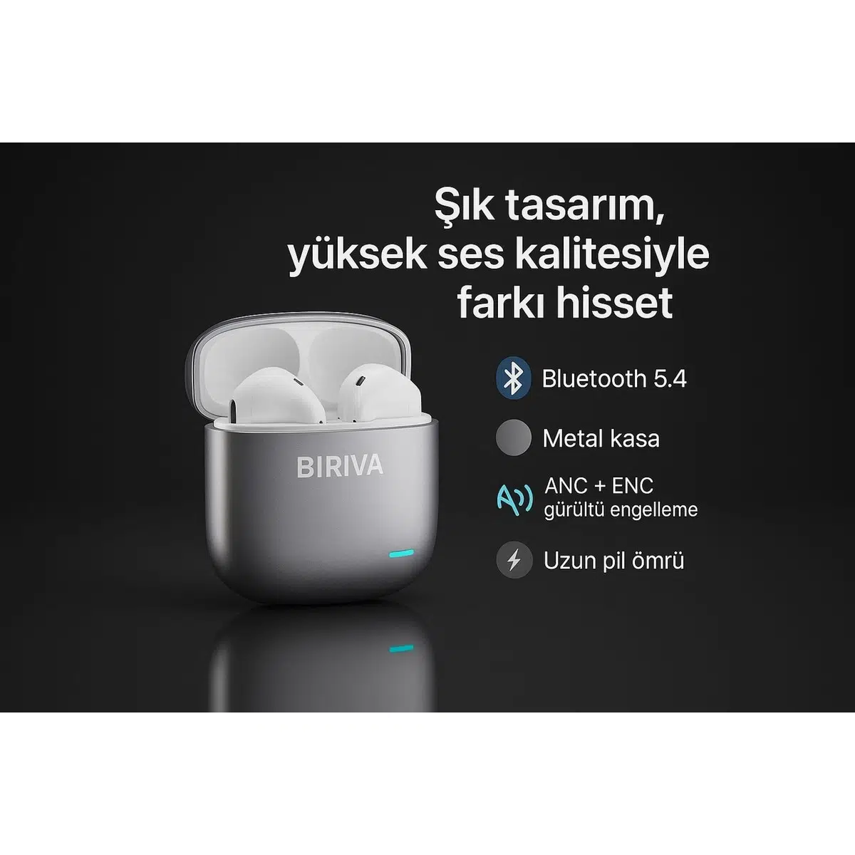 BİRİVA X27 Pro Kablosuz Kulaklık Yüksek çözünürlüklü ses kalitesi, güçlü mikrofon performansı ve gelişmiş bağlantı teknolojisiyle iş, spor ve günlük kullanımda üstün deneyim sunar. Teknik Özellikler • Çipset: JieLi 6983 • Bluetooth Sürümü: 5.4 (Çift kulakla görüşme desteği) • Frekans Aralığı: 2.402 – 2.480 GHz • Desteklenen Protokoller: A2DP, AVRCP, HFP, HID, AVCTP, AVDTP, SPP • İletim Mesafesi: Yaklaşık 10 metre • Ses Frekans Tepkisi: 20 Hz – 20 000 Hz • Hoparlör Ünitesi: 13 mm sürücü, 32 Ω ±15%, 7.118 ±3 dB, 5 mW • Mikrofon Hassasiyeti: −42 ±3 dB (2718 silikon mikrofon) • Şarj Girişi: DC 5 V / 1 A • Pil Türü: 3.7 V polimer batarya • Şarj kutusu: 320 mAh • Kulaklık: 35 mAh • Şarj Süresi: Yaklaşık 1 saat • Kullanım Süresi: Tek şarjla 6 saat kesintisiz müzik Öne Çıkan Özellikler • Gelişmiş HD arama kalitesi • 13 mm geniş ses sürücüsüyle güçlü bas ve net tizler • Bluetooth 5.4 ile hızlı ve kararlı bağlantı • Ergonomik ve hafif tasarım, uzun süreli konfor • Uzun pil ömrü ve hızlı şarj desteği